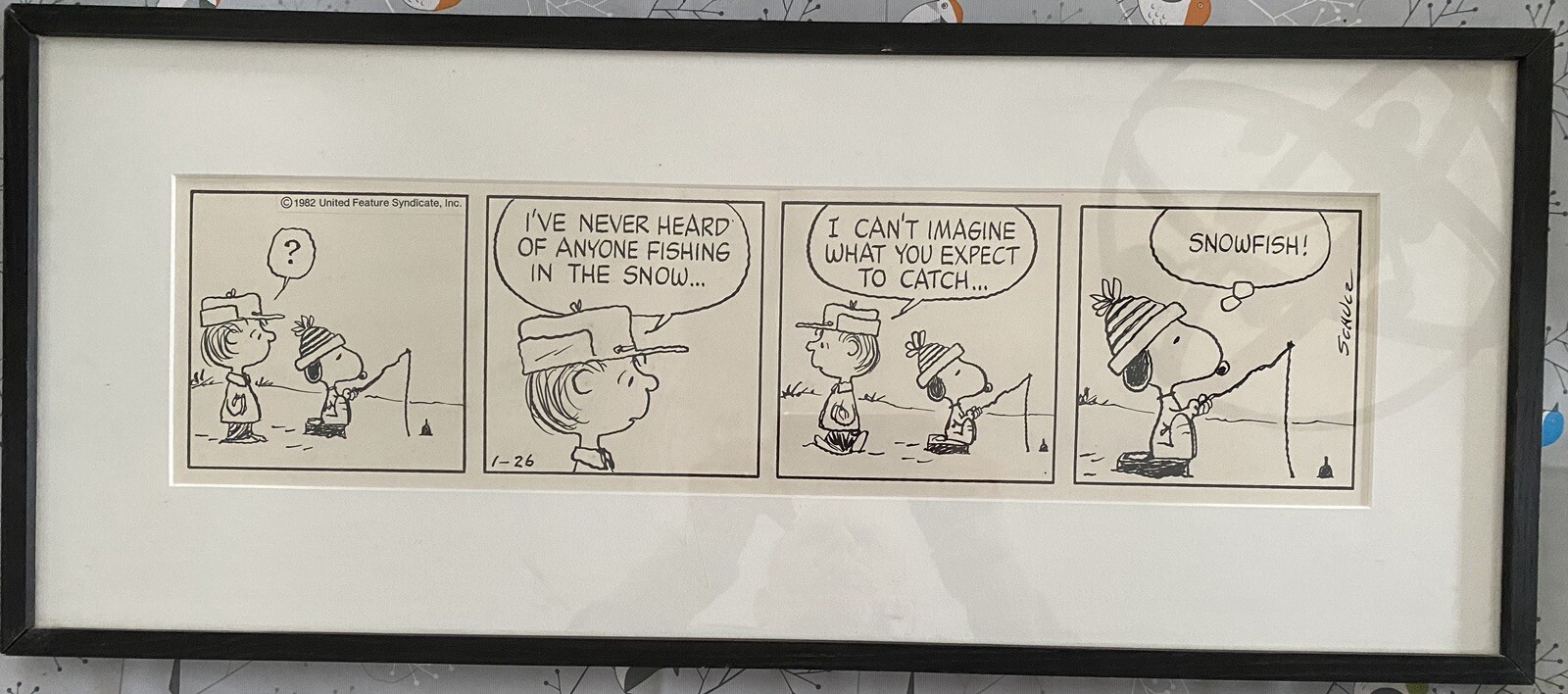 Snoopy does some winter fishing in a