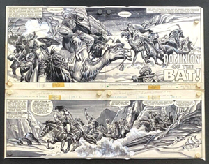 eBay top bid auction is a John Buscema double page spread featruing Conan fleeing across the desert from some camel-riding warriors.