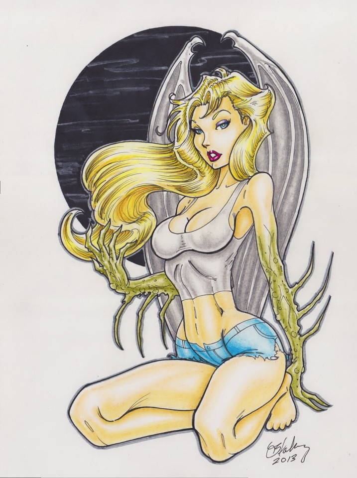 OOAK White Queen Color Pinup Comics Art MARK BEACHUM Marvel Emma F |
