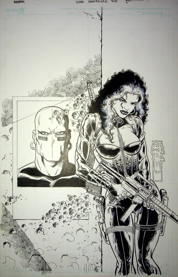 | DAREDEVIL VOL. 5 #6 COMIC BOOK COVER STUDY PRELIMINARY ORIGINAL ART BY BILL SEINKIEWICZ (FEATURING ELEKTRA). |