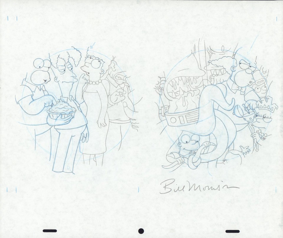 BILL MORRISON SIGNED 2006 SIMPSONS COVER PRELIM ART + COMIC--BART, LISA, HOMER!