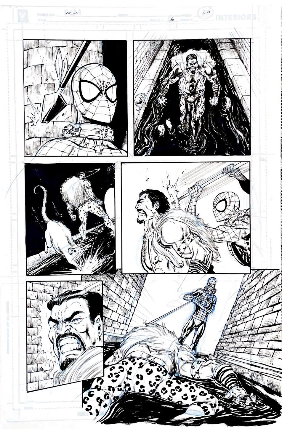 Planche originale n°46 accompagnée de ses 5 étapes préparatoires à la mine de plomb sur calque