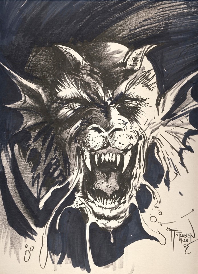 1985 JOHN TOTLEBEN Original Art HORNED DEMON Headshot SIGNED / DATED Sketch