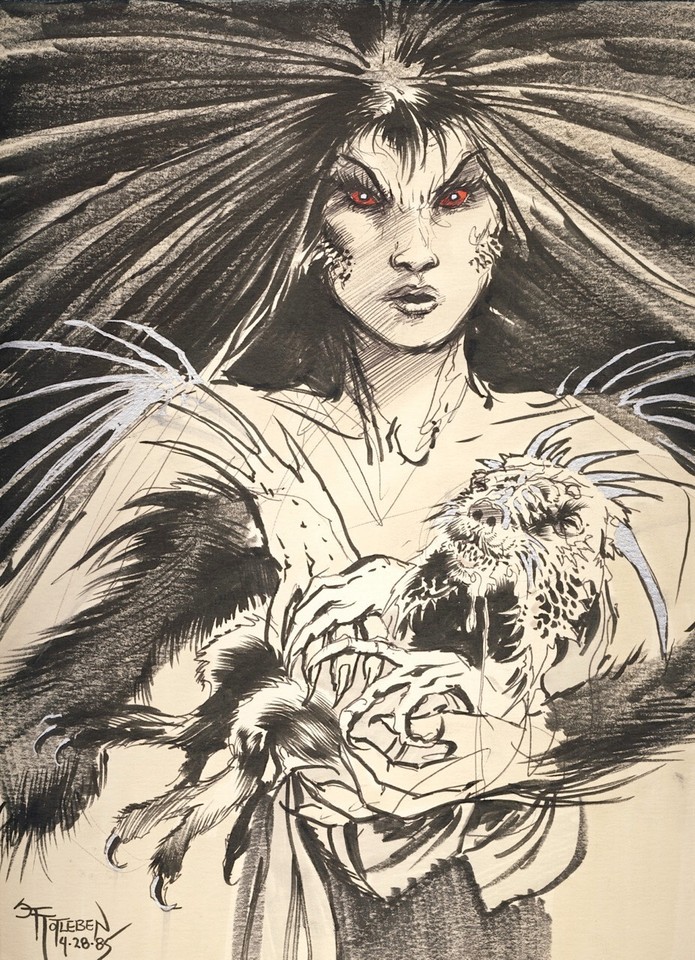 1985 JOHN TOTLEBEN Original Art FEMALE DEMON DEMONIC BABY Sketch SIGNED / DATED