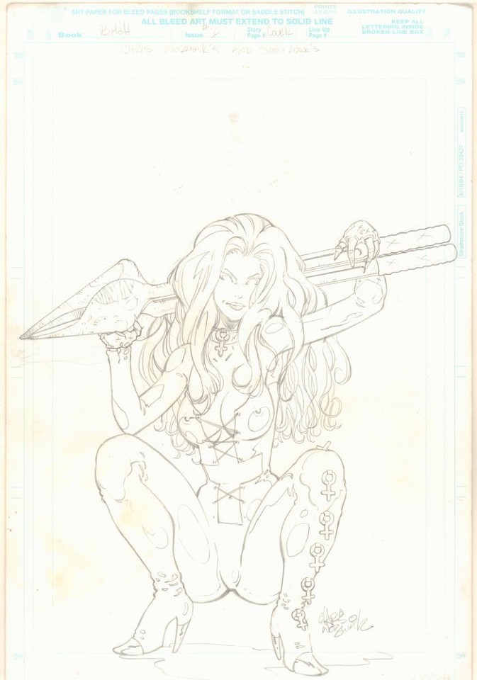 | DAREDEVIL VOL. 5 #6 COMIC BOOK COVER STUDY PRELIMINARY ORIGINAL ART BY BILL SEINKIEWICZ (FEATURING ELEKTRA). |