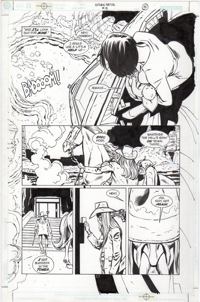 Tavola originale per Outlaw Nation 13 p.21. Cm.28 x 43. VERTIGO USA. Anno di esecuzione 2000. Chine Goran Sudzuka.