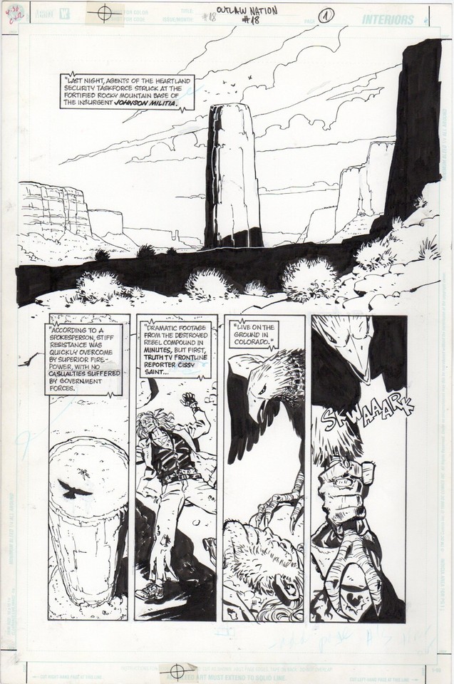 Tavola originale per Outlaw Nation 18 p.21. Cm.28 x 43. VERTIGO USA. Anno di esecuzione 2000. Chine Goran Sudzuka.