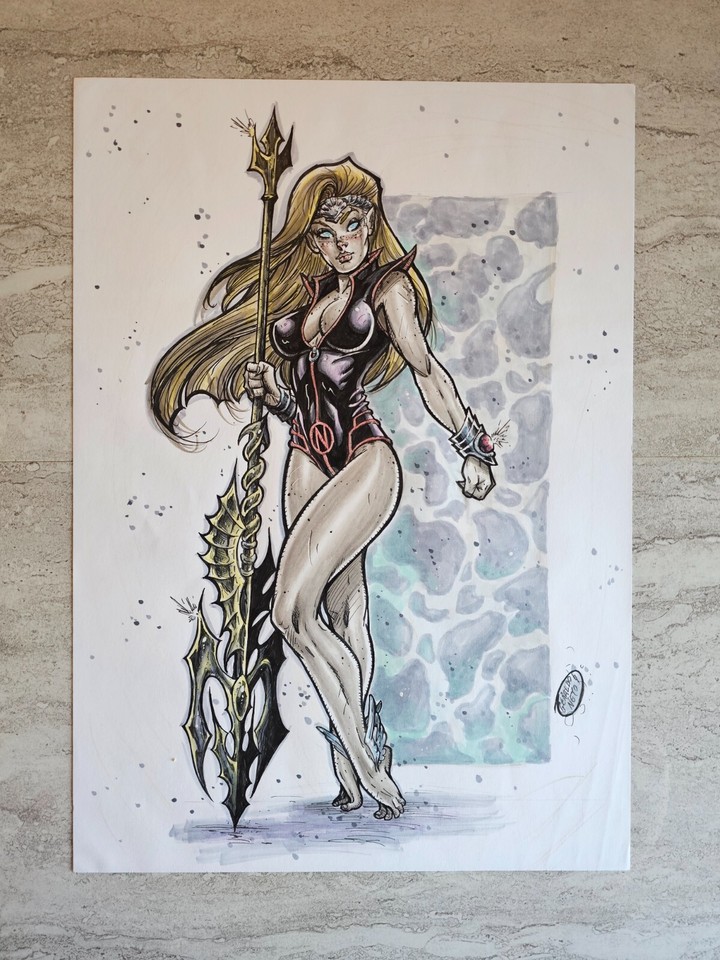 | BRIDE OF FRANKENSTEIN NUDE PIN-UP ORIGINAL ART COMMISSION WITH PRELIMINARY PENCIL ART BY BRUCE TIMM. |