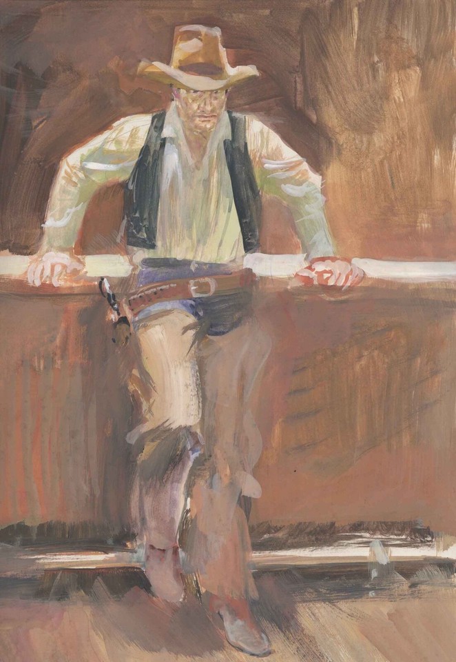 | Carl Barks - Sheriff Donald at Gory Gap Oil Painting - Four Color #199 “The Sheriff of Bullet Valley” |
