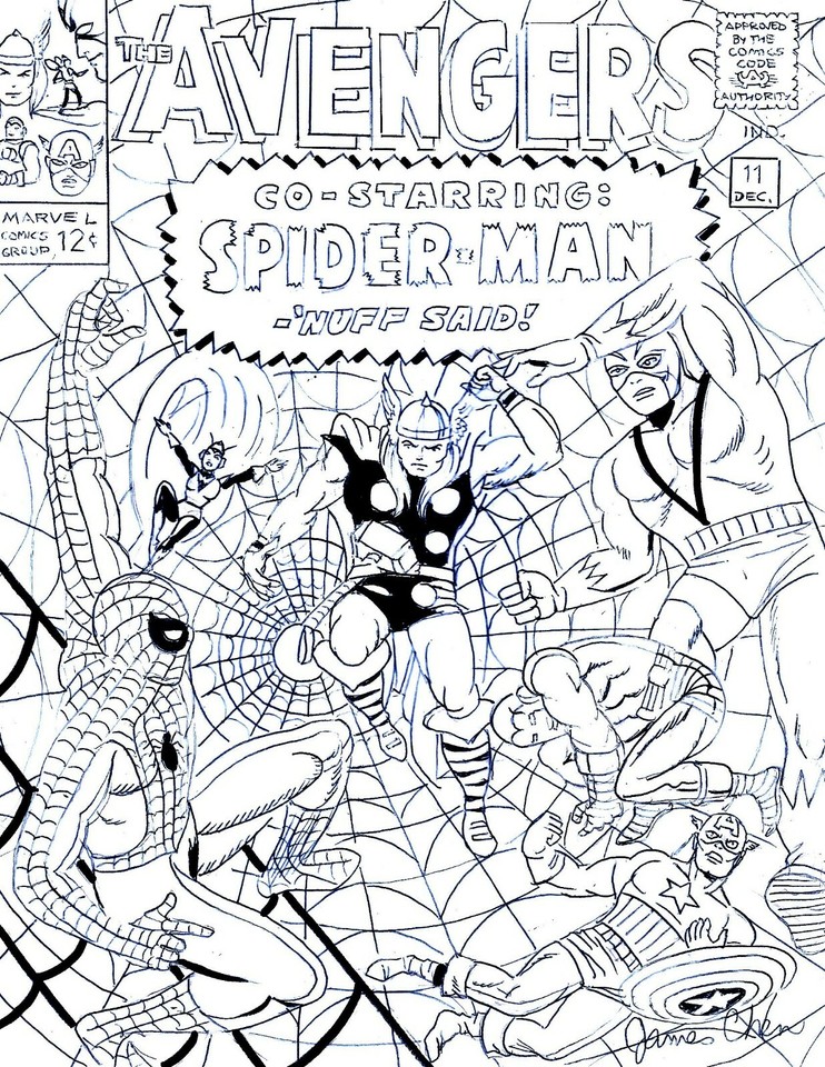 AVENGERS # 11 COVER RECREATION SPIDER-MAN VS AVENGERS ORIGINAL COMIC ART