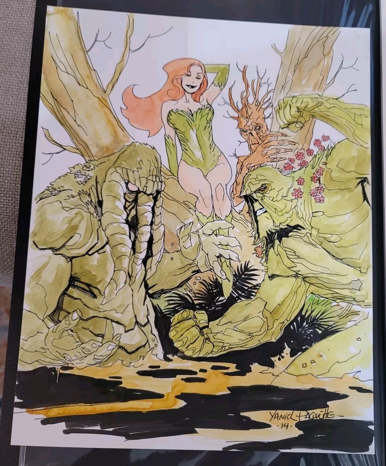 Yanick Paquette 11 x 14 Original Art Poison Ivy, Man-Thing, Swamp Thing & Groot