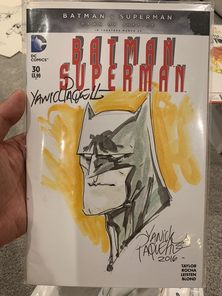 Batman Original Sketch Water Color by YANICK PAQUETTE Signed Twice!