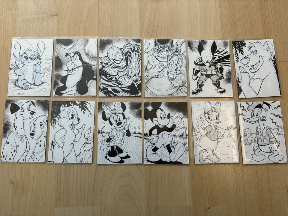 Lot of 11 Original Disney Sketch Cards by Comic Book Artist Gary Shipman