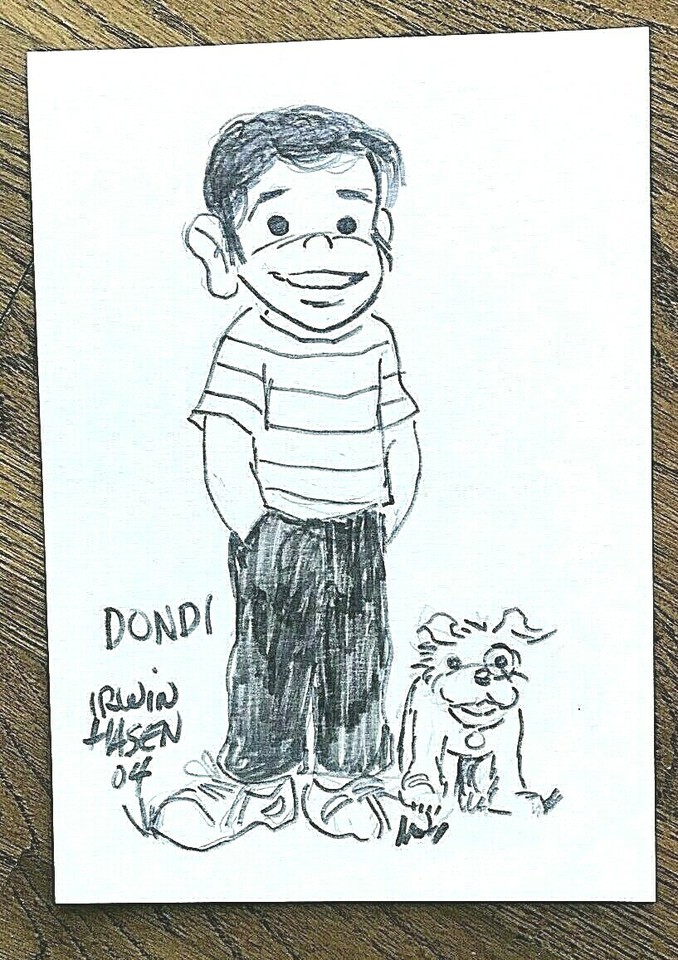 Irwin Hasen Hand Drawn "Dondi" Sketch on 4" x 6.5" Card Signed w/ COA