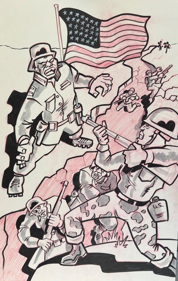 SUPERMAN PUNCHED ORIGINAL ART DONE BY ETHAN SLAYTON and Inked BY MIKE SELLERS!!