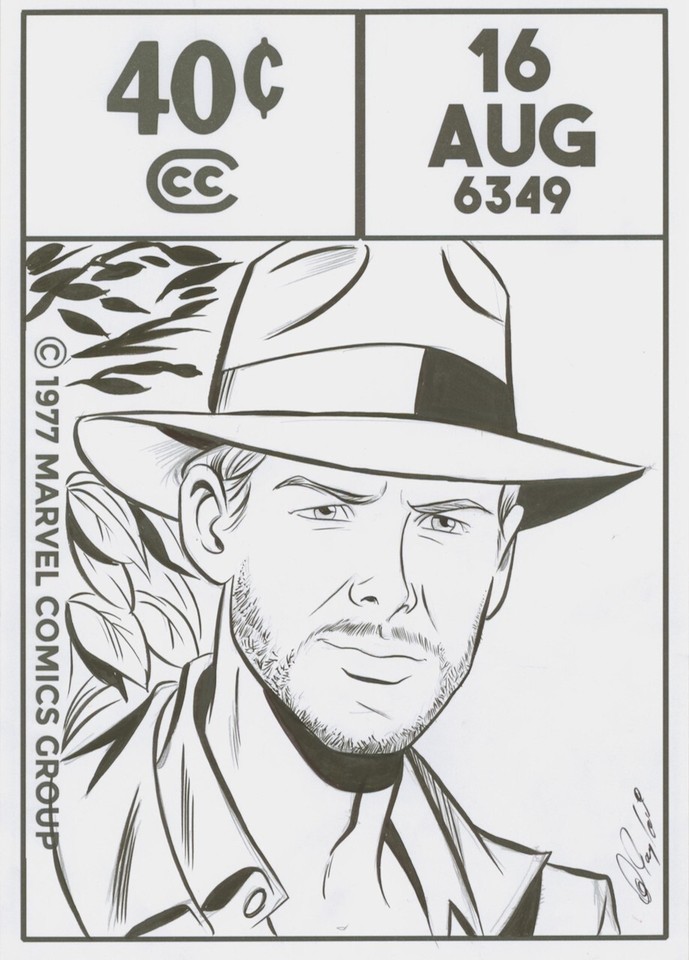 Des Taylor SIGNED Original Marvel Comics Corner Box Art Sketch ~ Indiana Jones