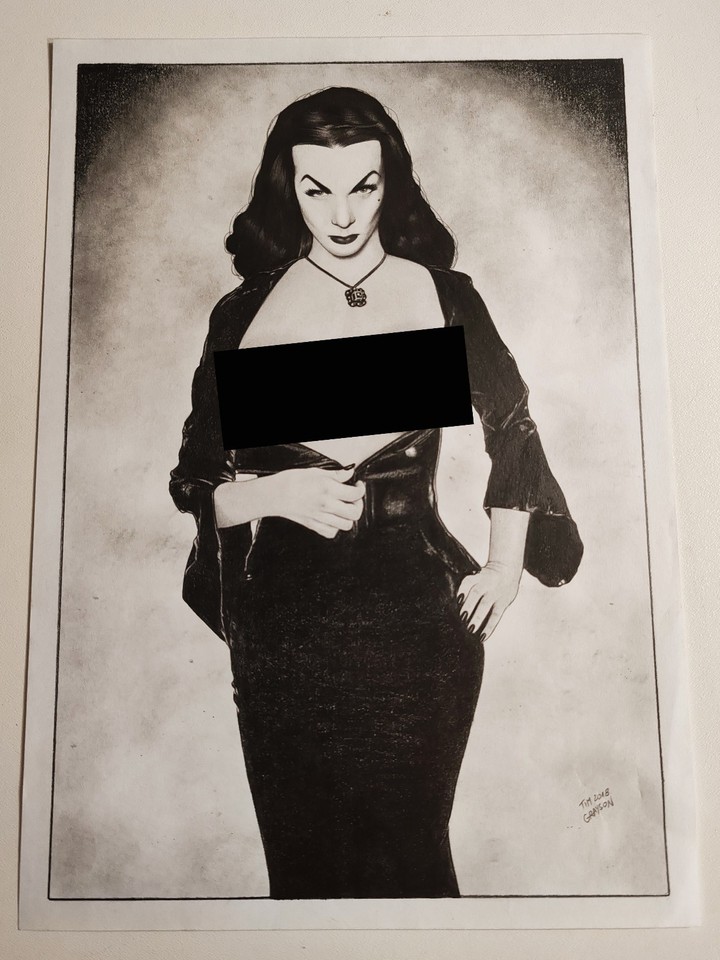Original Drawing Nude Art Morticia The Addams Family Big Boobs! TIM GRAYSON