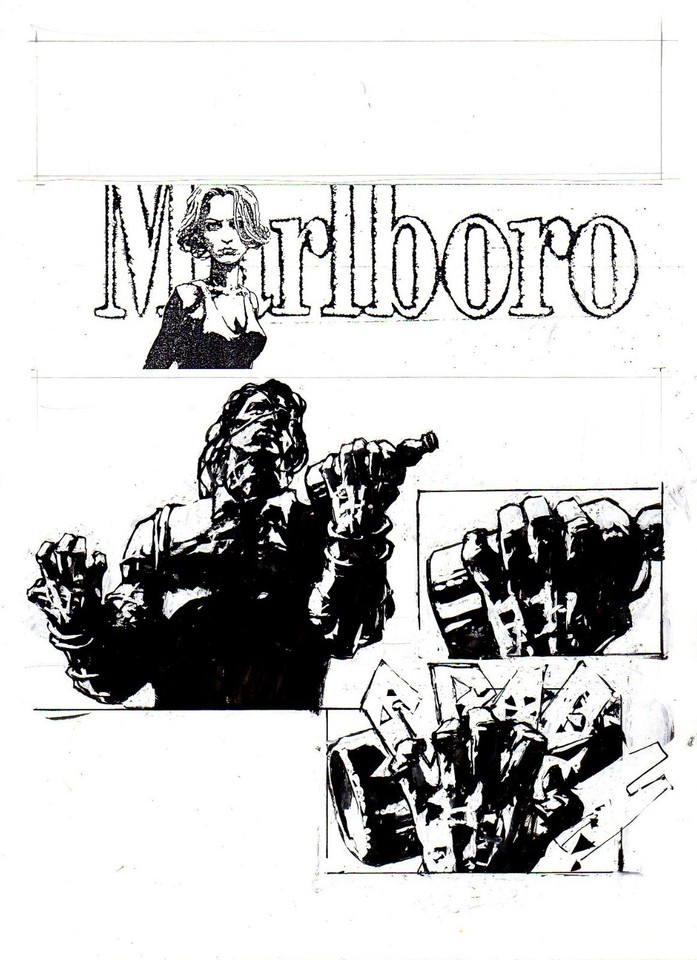 | DAREDEVIL VOL. 5 #6 COMIC BOOK COVER STUDY PRELIMINARY ORIGINAL ART BY BILL SEINKIEWICZ (FEATURING ELEKTRA). |