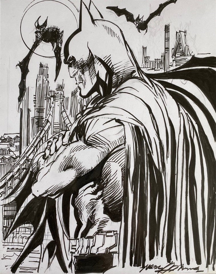 Batman by Neal Adams 2006 completely in narker on a comic book backboard