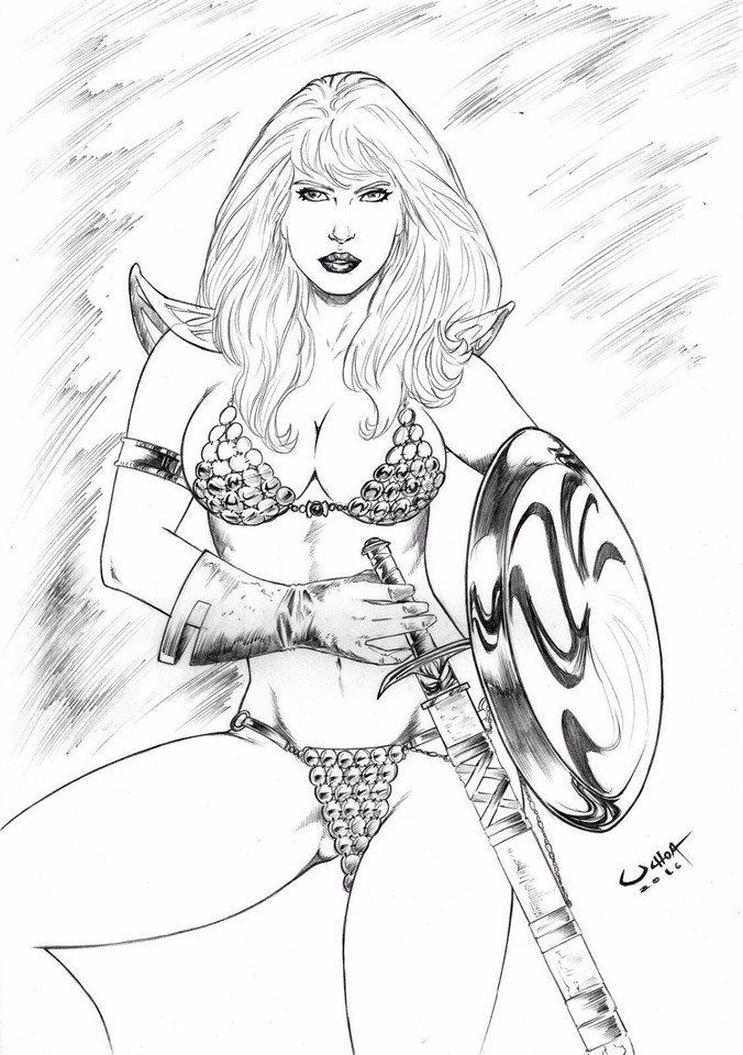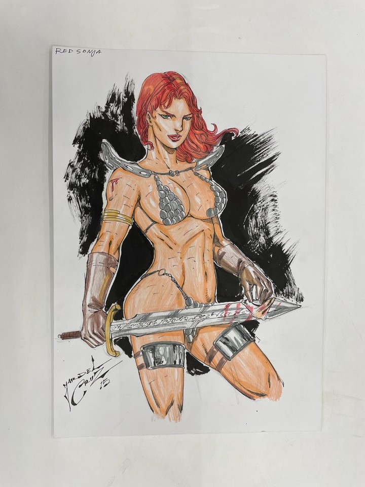 Red Sonja by Rudy Nebres 2024 completely in pencil on comic book backboard