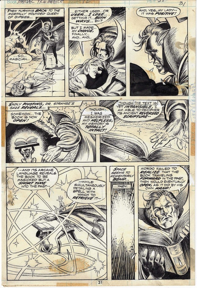 FRANK BRUNNER DOCTOR STRANGE #1 1ST ISSUE ACTION PAGE! (1974, DOCTOR STRANGE ATTACKED BY THE SILVER DAGGER)