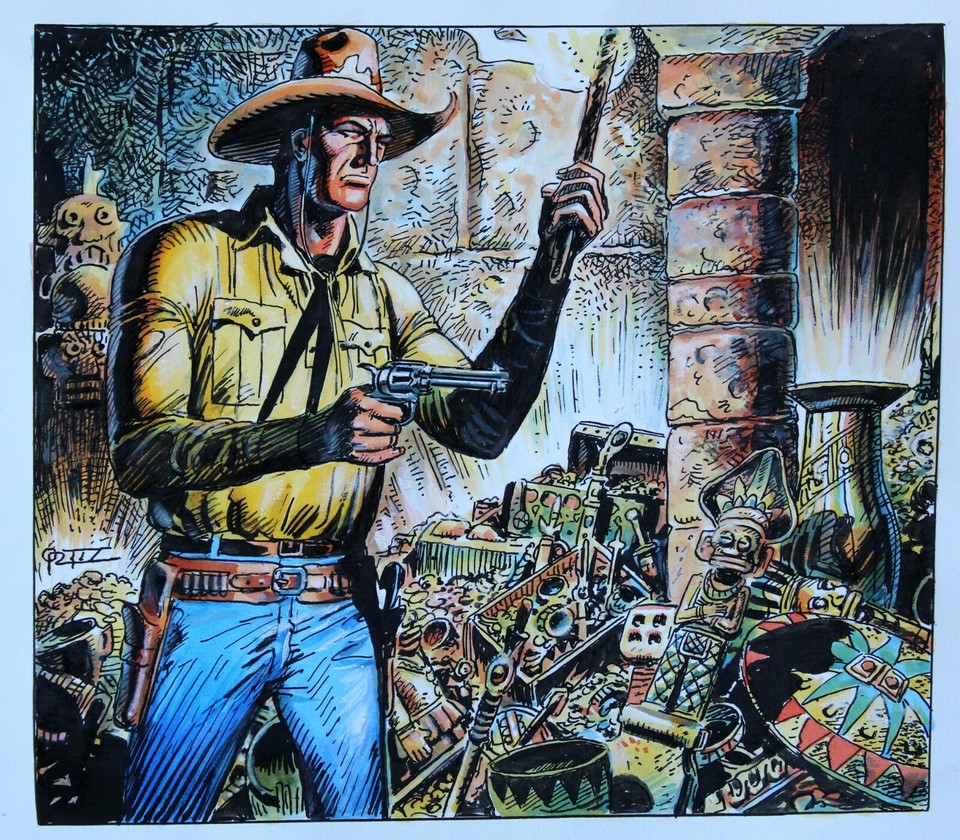 | Carl Barks - Sheriff Donald at Gory Gap Oil Painting - Four Color #199 “The Sheriff of Bullet Valley” |