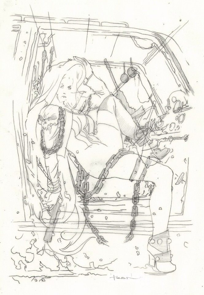 | DAREDEVIL VOL. 5 #6 COMIC BOOK COVER STUDY PRELIMINARY ORIGINAL ART BY BILL SEINKIEWICZ (FEATURING ELEKTRA). |