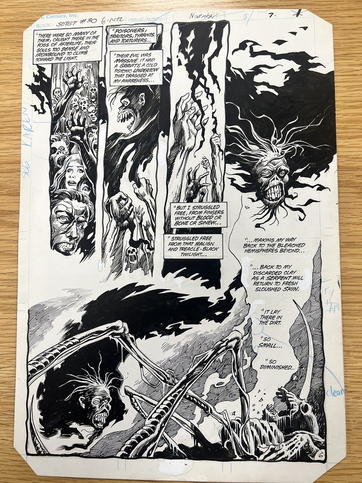 STEPHEN BISSETTE AND JOHN TOTLEBEN SAGA OF SWAMP THING #19 PAGE (1983, ANTON ARCANE EXPLAINS HOW HE CAME BACK FROM THE DEAD)