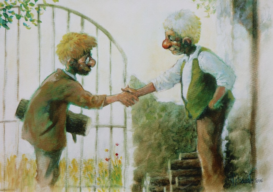 | Norman Baer - Gentleman Strolling Painting Illustr |